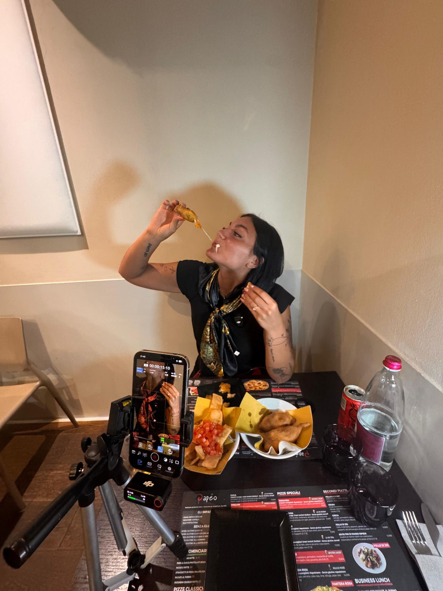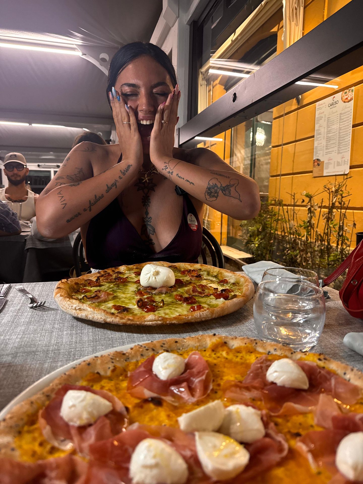 Mik ha scelto la versione più fit con una piadina con pollo e guacamole, leggera ma super gustosa, io non ho resistito alla tradizione con la piadina al crudo e squacquerone, simbolo della Romagna. Non poteva mancare la pinza farcita con pomodoro, mozzarella e zucchine, fresca e digeribile, perfetta per chi cerca un’alternativa diversa. E per chiudere in dolcezza? Una piadina con Nutella che mi ha reso felice Sara e ha reso l’esperienza completa.