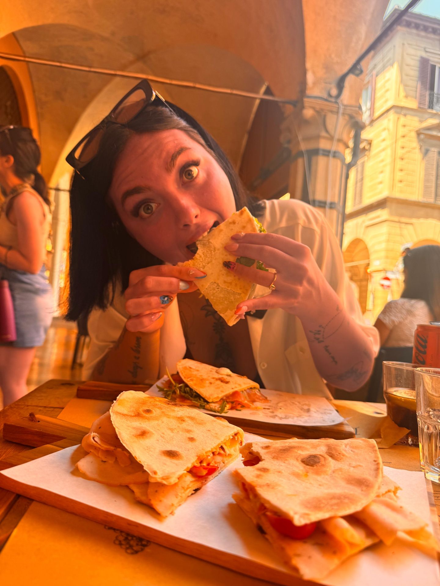 Good piadina right behind the two Towers of Bologna! I really recommend the place, the piadina was delicious and the waiters were super nice and gentile too! I took the vegan piadina, with chickpeas hummus, salad, fresh and dried tomatoes. So glad to found this option on the menu 😍